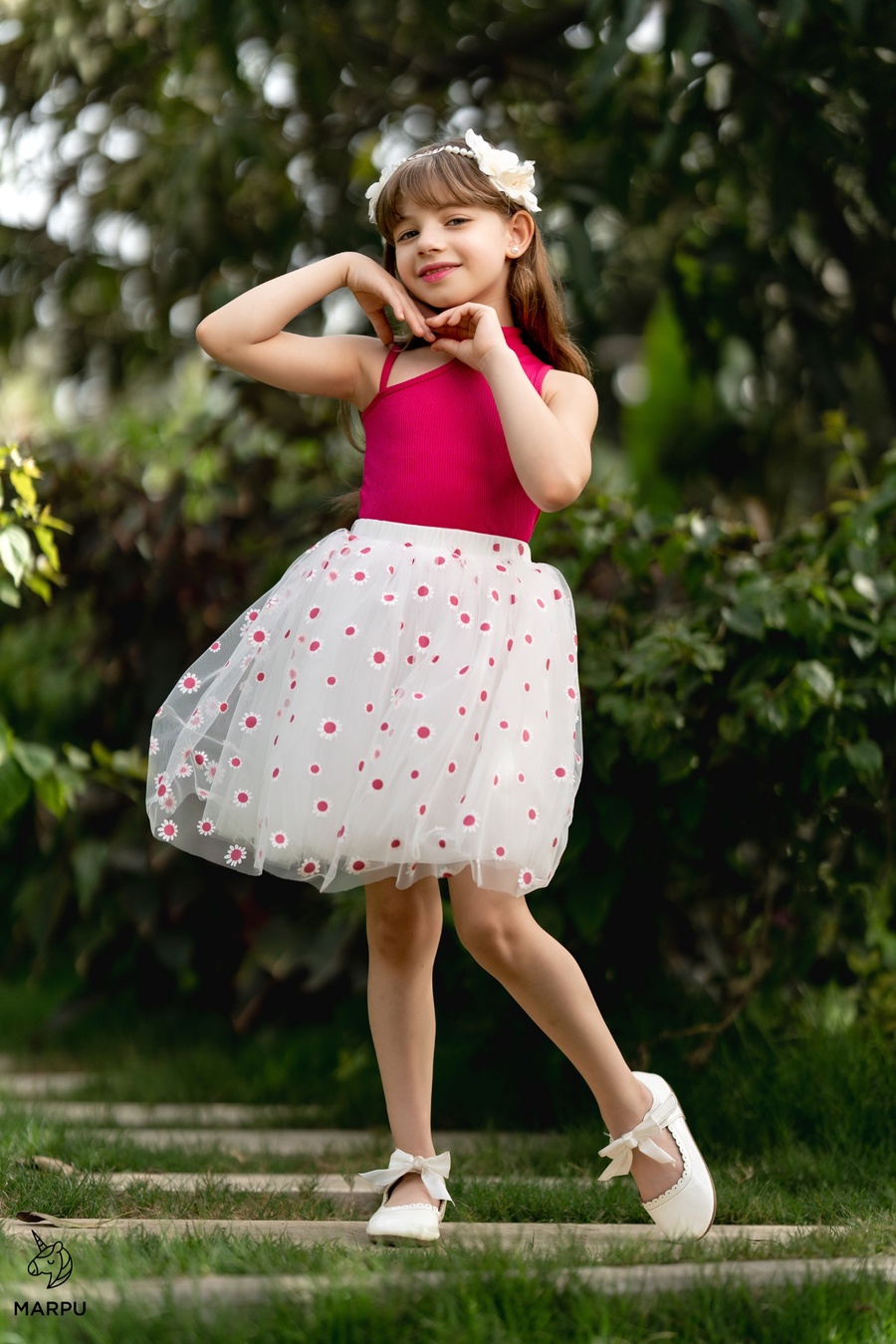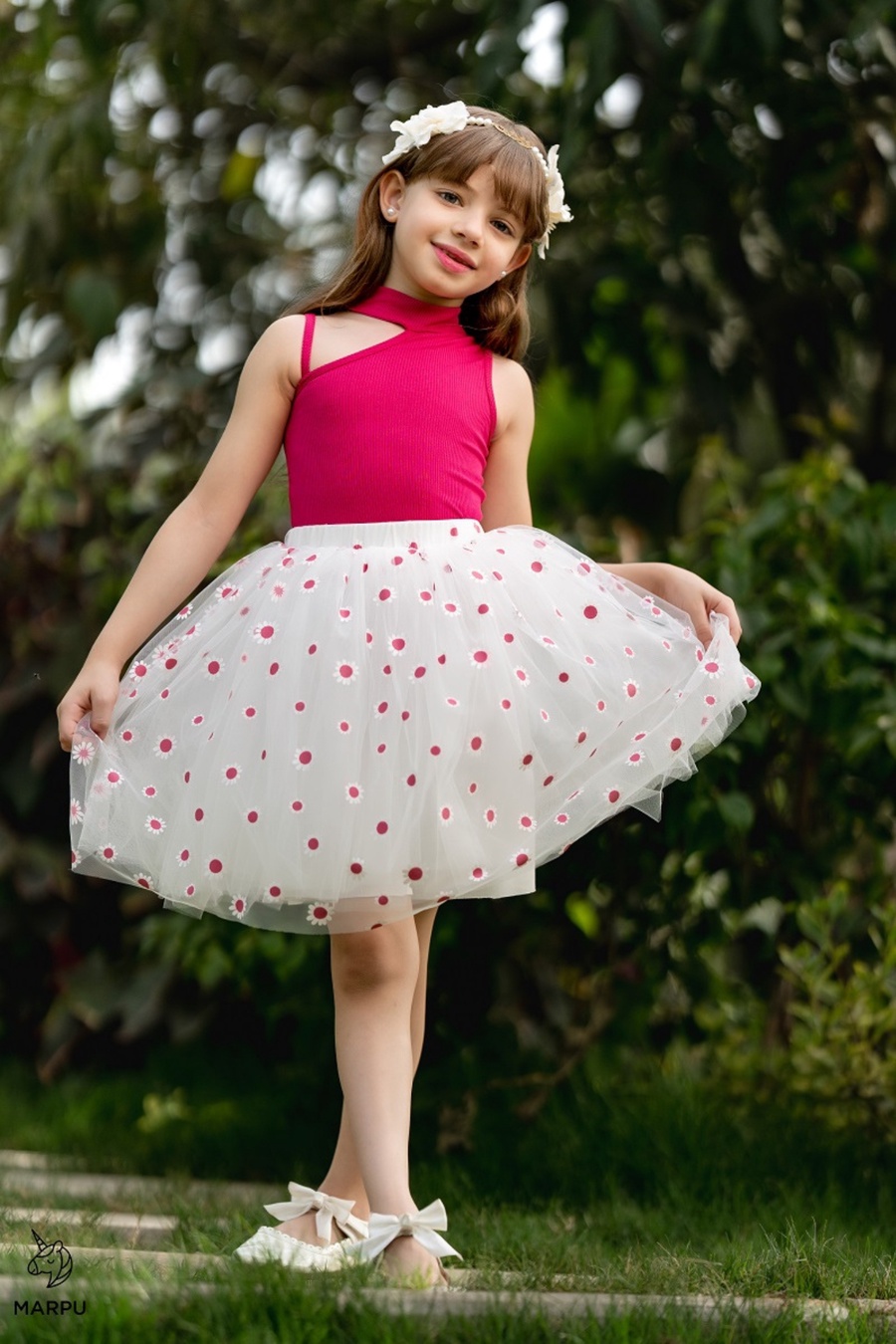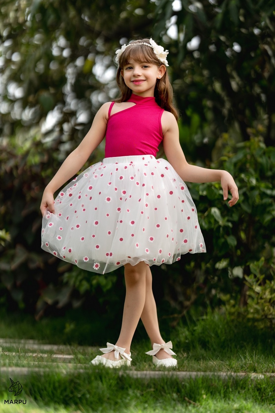 👗 جيبة تول برسمة عباد شمس على خامة خفيفة ومبطنة
