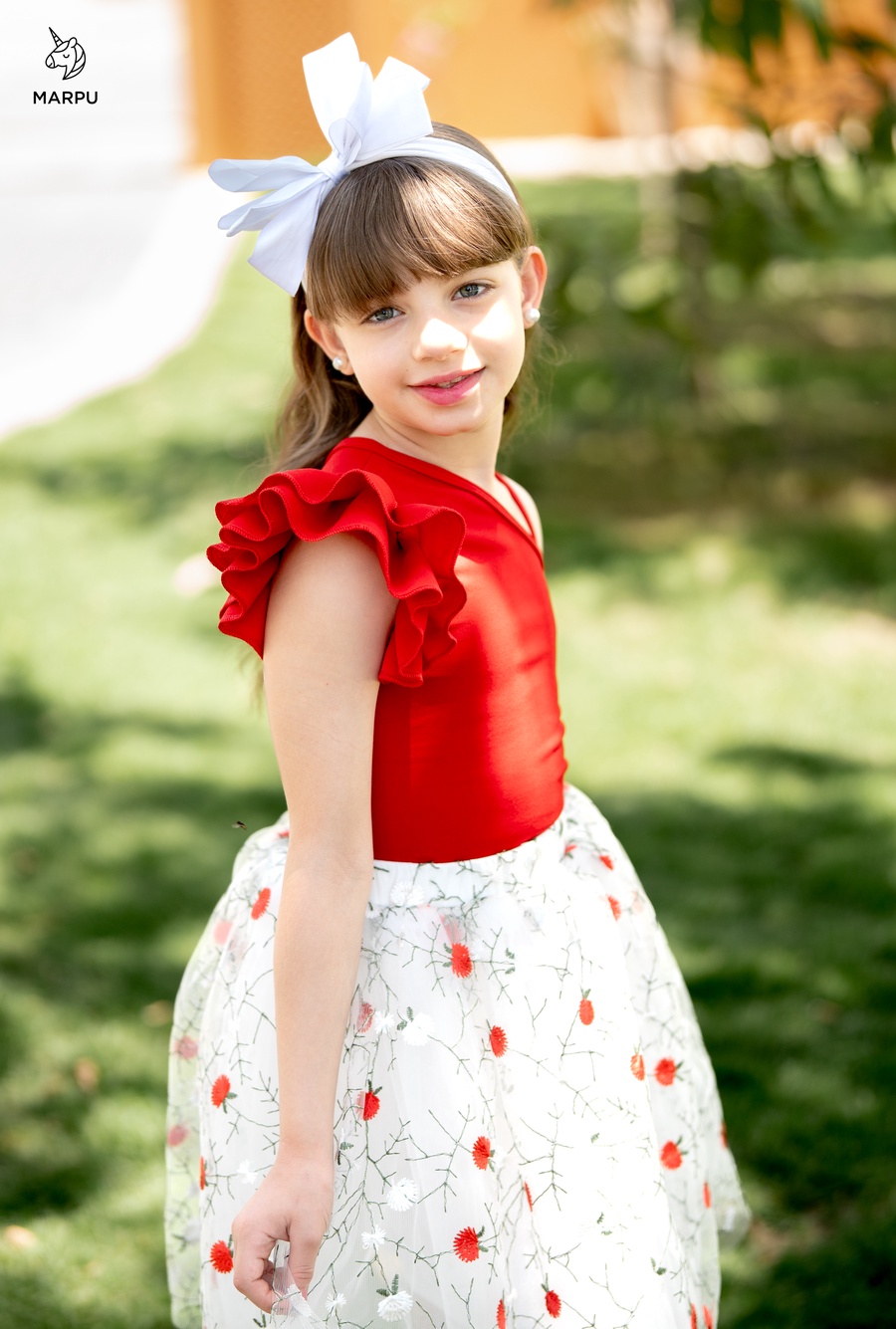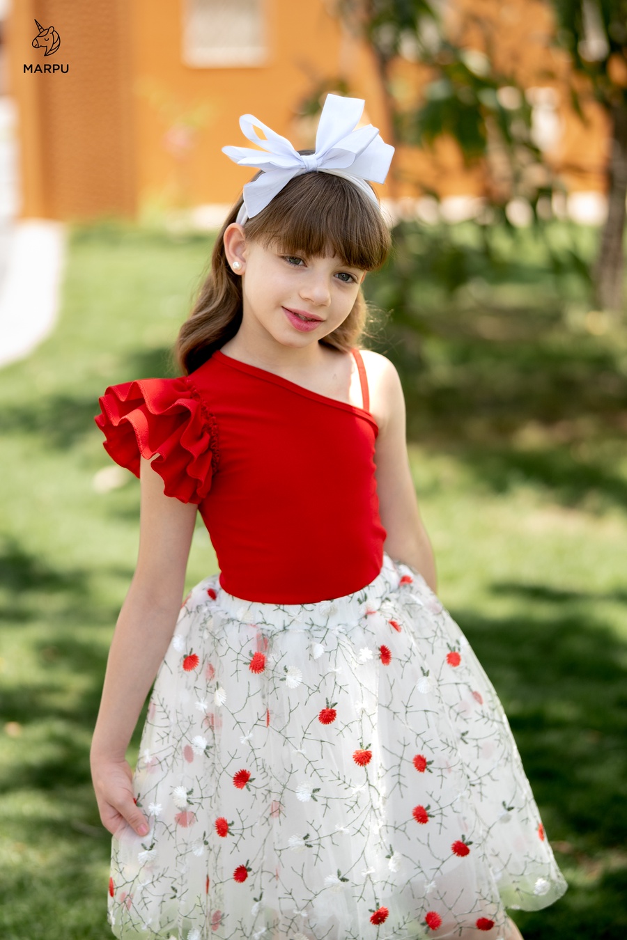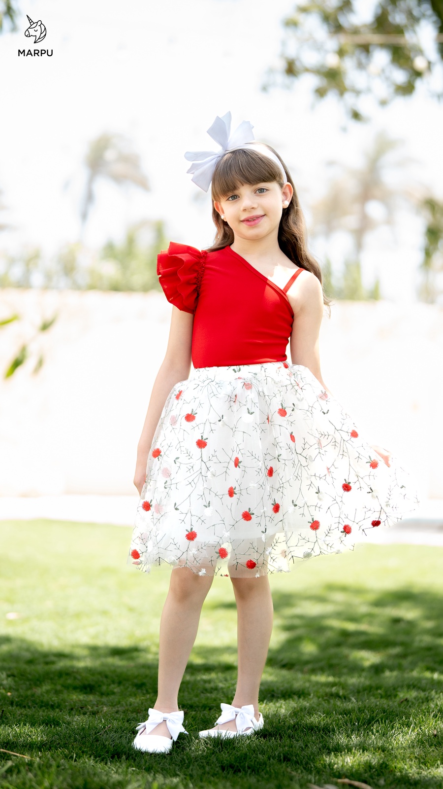 وجيبة تل ورد أحمر مطرزة بطبقات تل ناعمة وبطانة روزيتة بتدي شكل سواريه فاخر