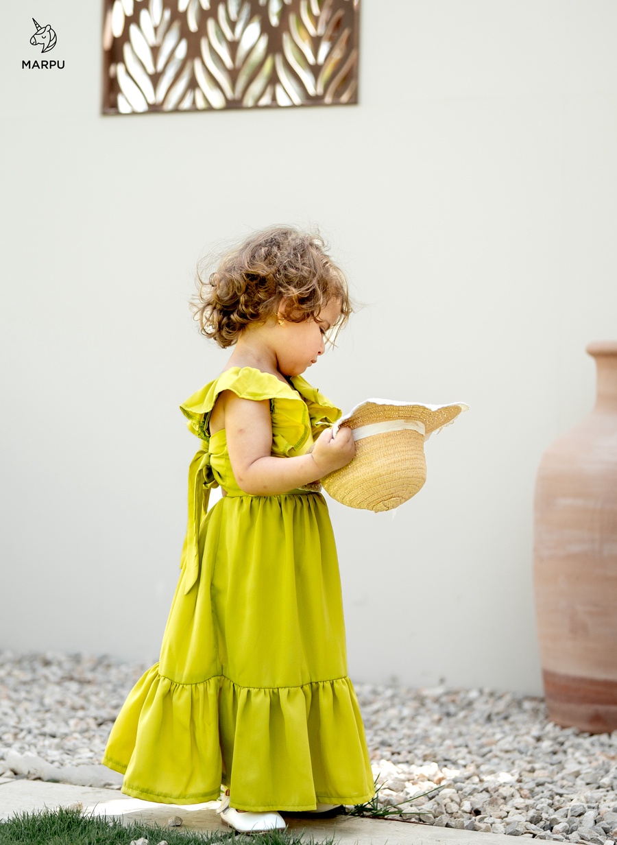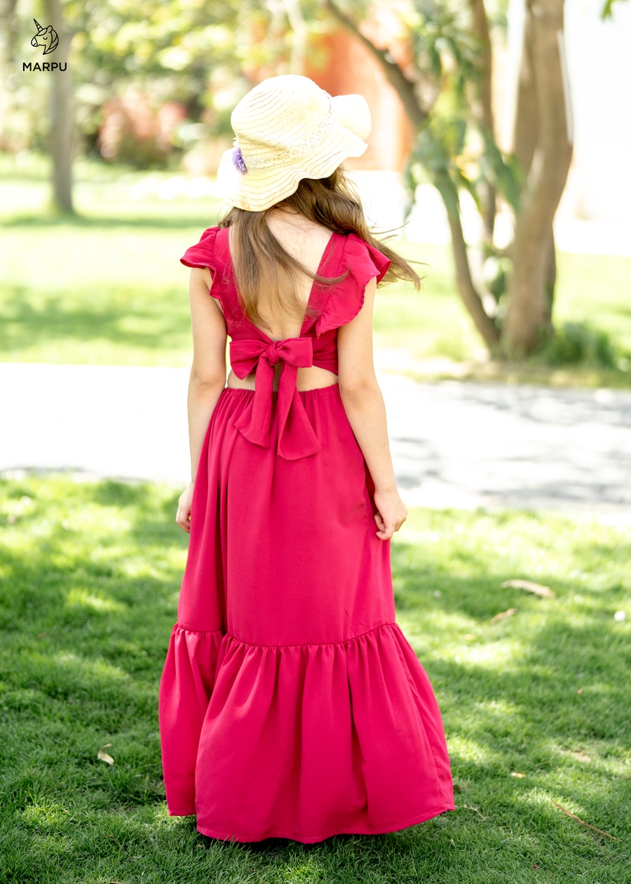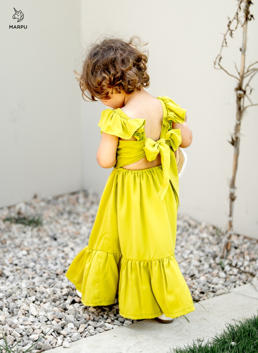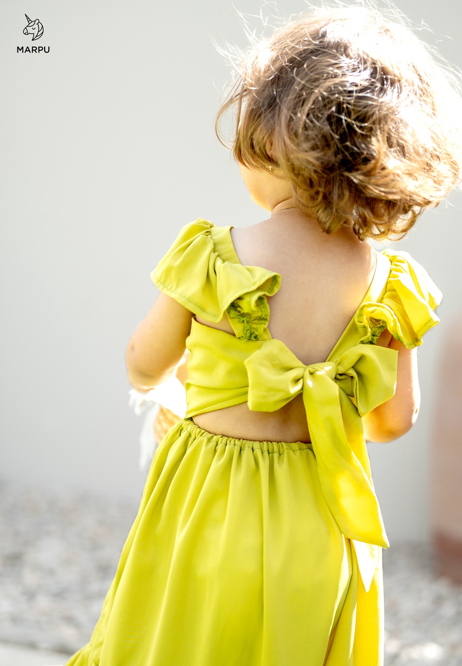 فستان كاجوال بفيونكة خلفية – ألوان كيوي / فوشيا 😍