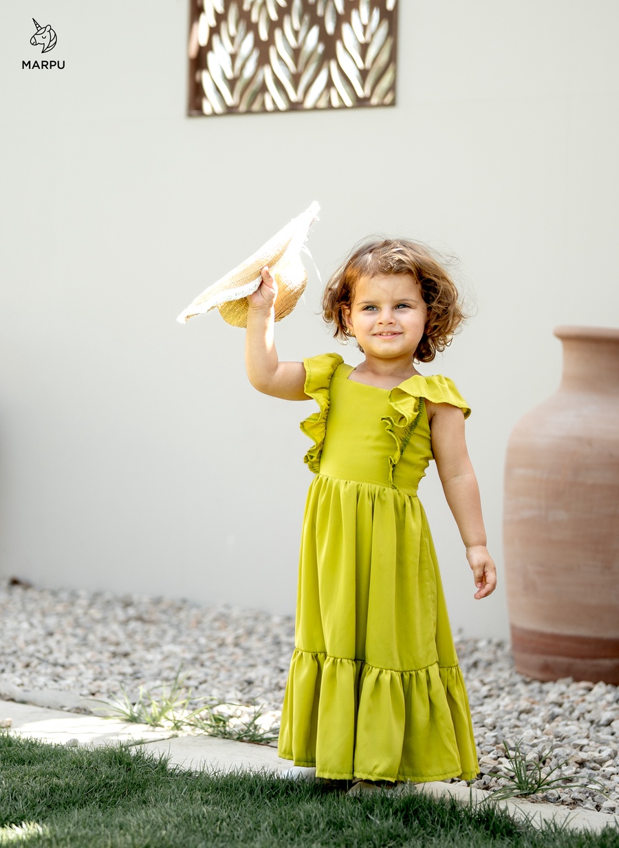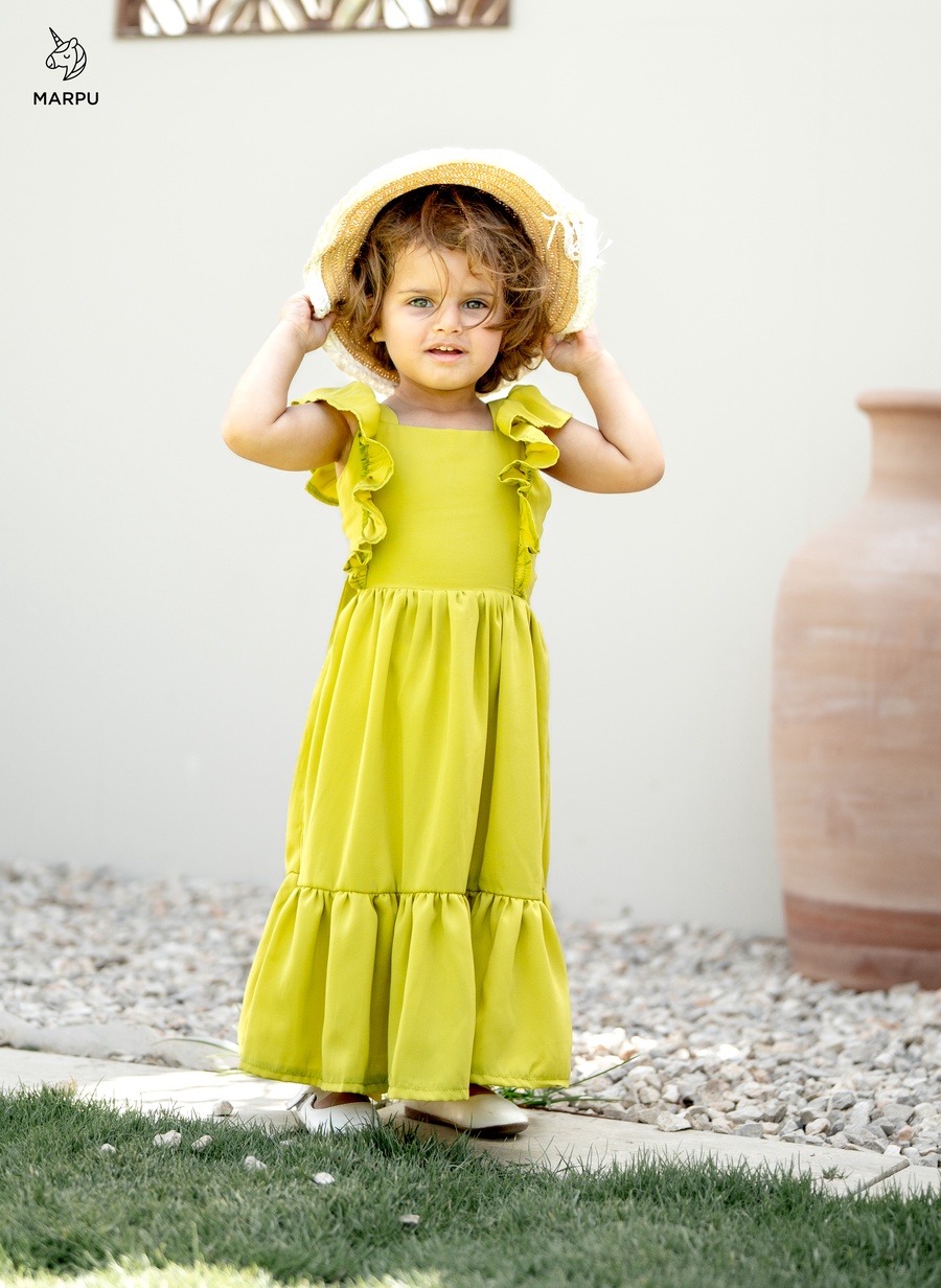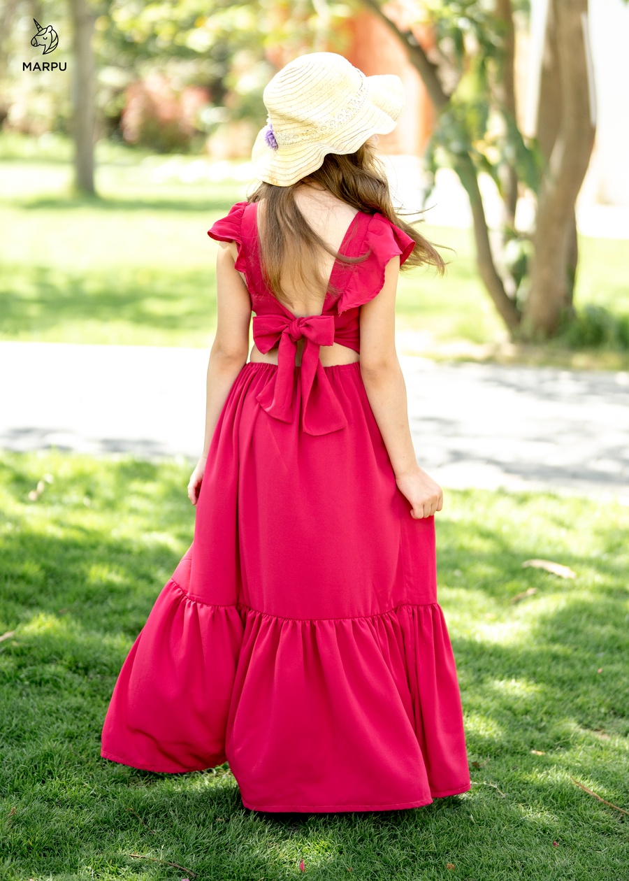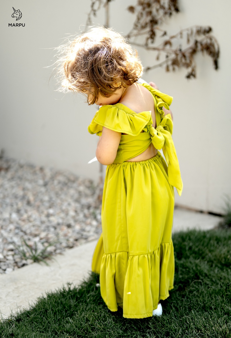 فستان كاجوال بفيونكة خلفية – ألوان كيوي / فوشيا 😍