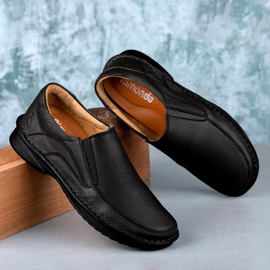 حذاء طبي مصنوع من الجلد الطبيعي البقري و مزود بفرش طبي