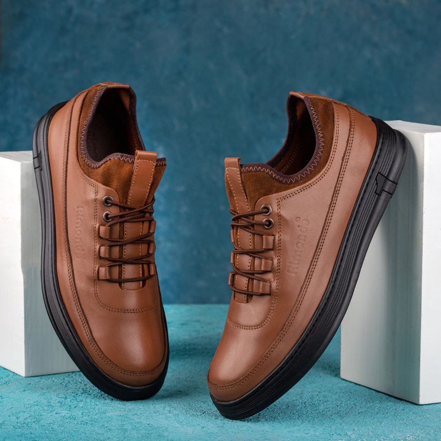 حذاء رجالي كاجوال جلد طبيعي بقري + ليكرا 🔥 - الحذاء بتصميم جديد يجمع بين الجلد والليكرا ليكون سهل في الاستخدام وشيك وأنيق ⚡